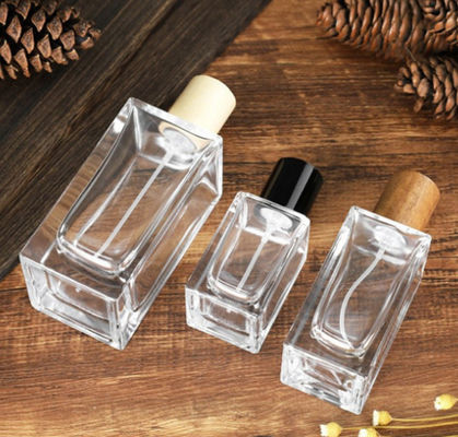 Yüksek Kaliteli Ahşap Kapaklı Cam Kozmetik Kapları Parfüm Şişesi Kristal Cam Şişeler