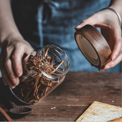 Çevre Dostu Özel Logo Boş Ahşap Kapaklı Şeffaf Mutfak Bidonları Şeffaf Cam Kavanoz