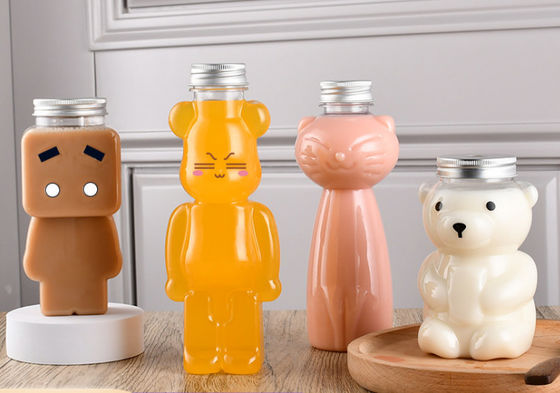 16 OZ 23.3 OZ PET Gıda Sınıfı Suyu Soğuk Kahve Süt Çay Ayı Plastik İçecek Şişeleri