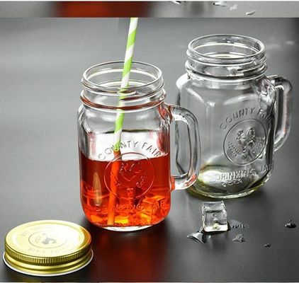 İlçe Fuarı Mason Kavanoz Kulplu Cam Saklama Şişeleri İçme
