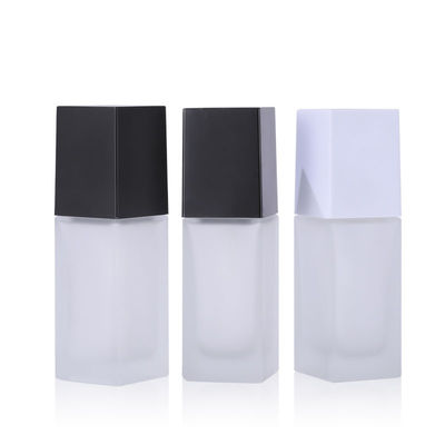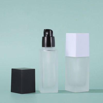 Kare emülsiyon Şeffaf Buzlu Pompa Cam Kozmetik Kapları Losyon Şişesi