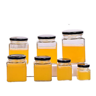 Bal İçin Özel Boş Gıda Depolama Kare Bal Kavanoz Cam Kavanoz Cam Saklama Şişeleri
