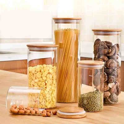 Cam Saklama Şişeleri Hava Geçirmez Cam Kavanoz Depolama Bambu Kapaklı Kurutulmuş Meyve Depolama