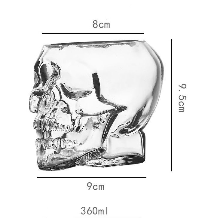 Yüksek kaliteli borosilikat camdan yapılmış şeffaf kafatasının şekli benzersiz bir tasarım anlayışına sahiptir.Barda veya evde kullanılabilir.kapasiteli50ml 80ml 150ml 350ml 700ml,kokteyl, viski, tekila ve çeşitli meyve içecekleri tutabilir.