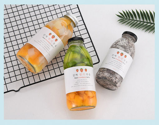 Yüksek kaliteli cam malzeme, kalınlaştırılmış şişe ağzı, şişe alt dişi kaymaz, iyi sızdırmazlık, ters su sızıntısı.300ml 350ml 500ml çoklu kapasite seçimi, her türlü meyve suyu içecek ambalajı için kullanılır