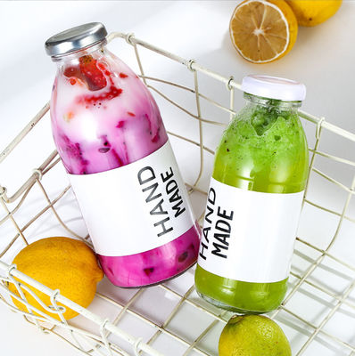 300ml 350ml 500ml yuvarlak şekilli içecek şişesi etiketli cam yoğurt Milkshake şişesi süt şişesi